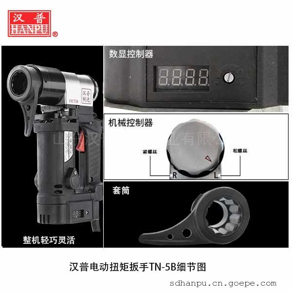 品牌:汉普 型号:TN-5B 螺钉直径:M16 M20 最大扭矩:500 Nm 电源电压:230V/115V 电源类型:交流电源 功率:1650W 转矩范围:200-500 n.m 最大转速:15.5 r/min 把手类型:握把式 重量:4.5 kg 加工定制:否 品牌 其他品牌 扭矩范围 200-500N.m 转速 15.5rpm 重量 4.5KG 适用螺栓 M16 M20 功率 1650W 保护等级 双绝缘 电压 230V/115V 汉普电动扭矩扳手Y系列TN-5B用于紧固有扭力要求的六角螺栓,动力为230v或115v交流电源,带有扭矩控制器,在一定范围内输出扭矩可调.工作时提前设定好要求的扭矩,机器达到扭矩后自动停止转动,带有正反两个档位,不但可以紧螺丝也可以卸螺丝,工作时,机器不带有冲击,需要反力臂提供作用力,Y系列电动扭矩扳手带有配套的反力臂套筒。